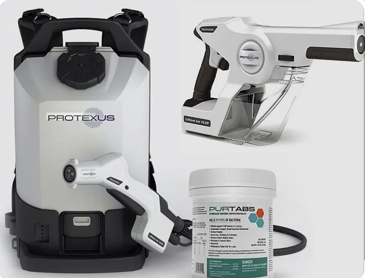 Electrostatic spraying with PurTabs creates a disinfecting solution (chlorine-based) that is designed to kill a wide range of harmful germs on surfaces. It’s effective against: Viruses – including COVID-19, influenza (flu), and common cold viruses Bacteria – such as E. coli infection, Salmonella infection, and MRSA infection Fungi & Mold – helps eliminate mold spores and mildew on treated surfaces Because the electrostatic charge helps the disinfectant wrap around surfaces, it ensures more complete coverage—so germs hiding in cracks, corners, and hard-to-reach areas are also treated.